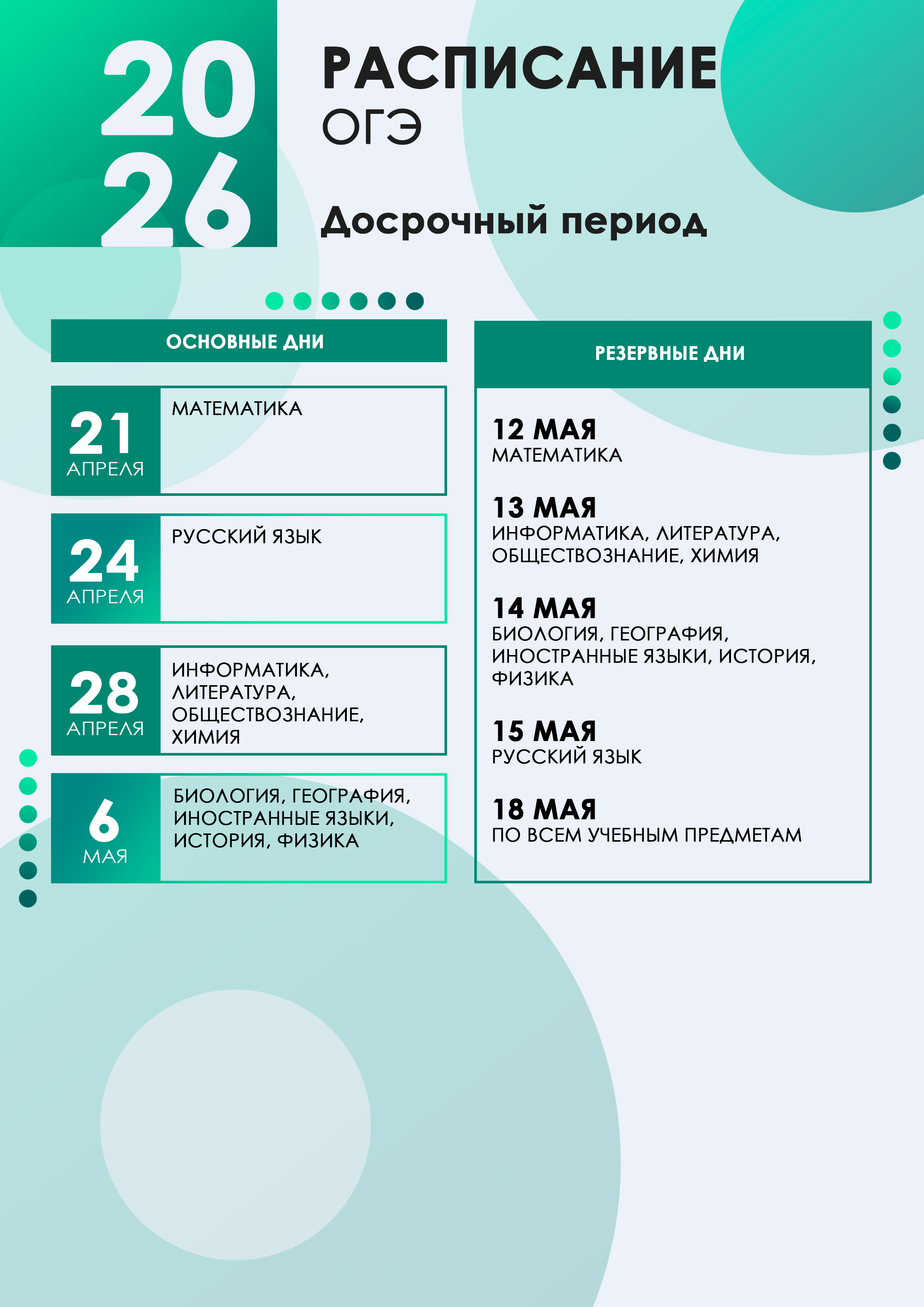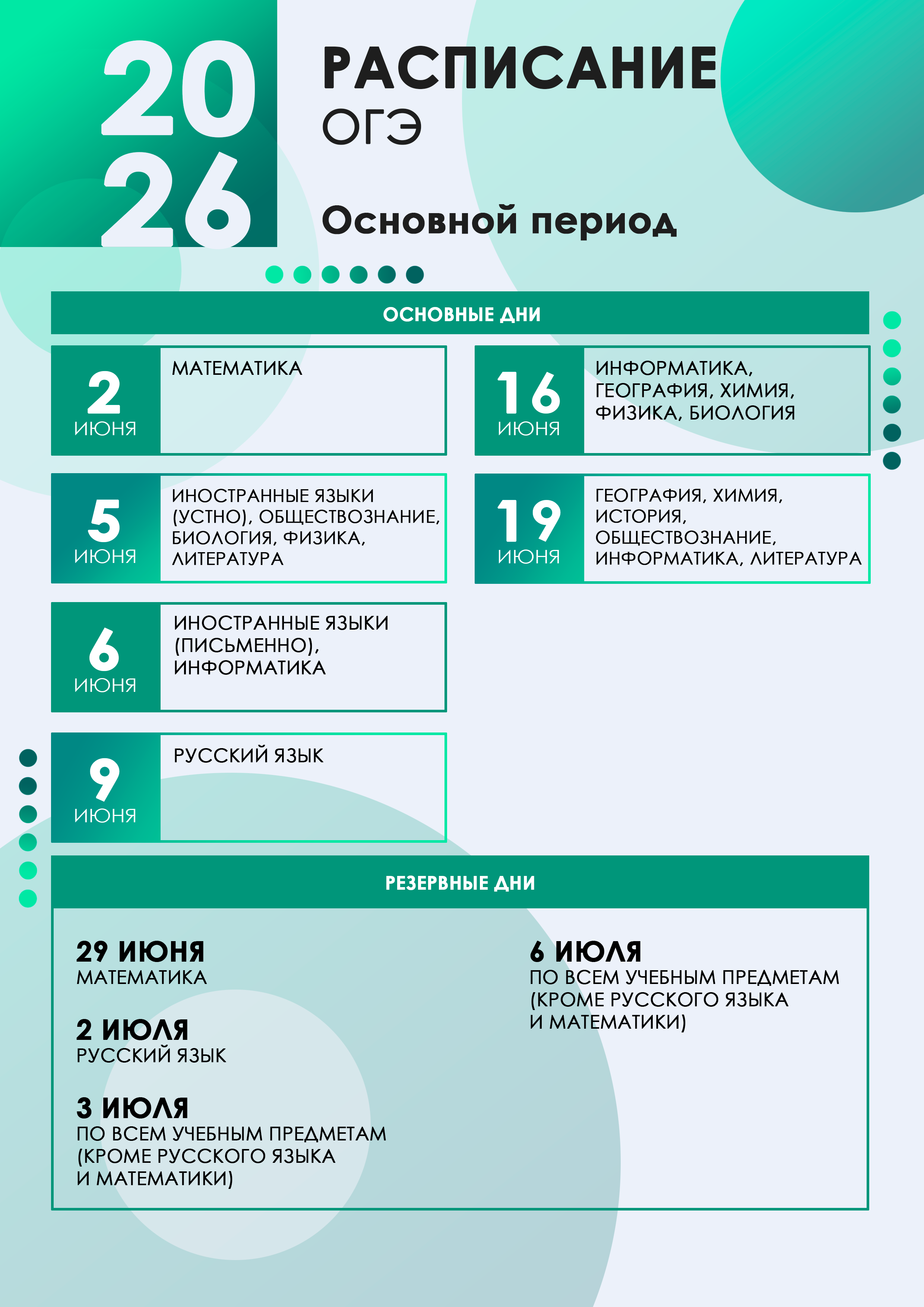 Даты проведения основного государственного экзамена в 2026 году: