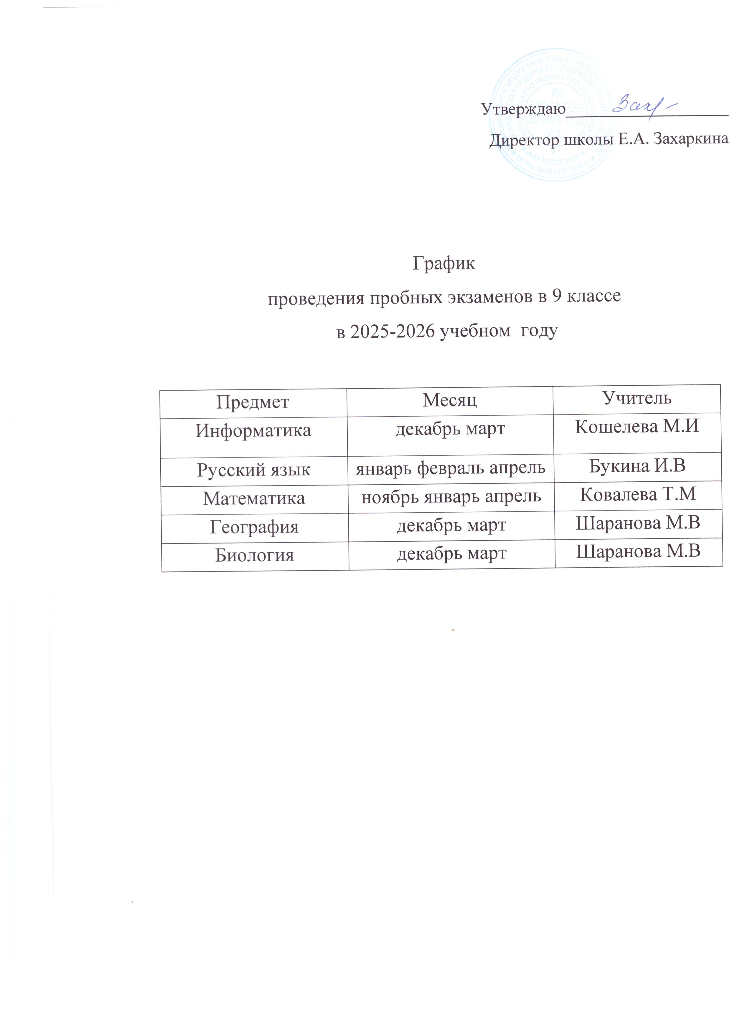 График проведения пробных экзаменов в 9 классе в 2025-2026 учебном году