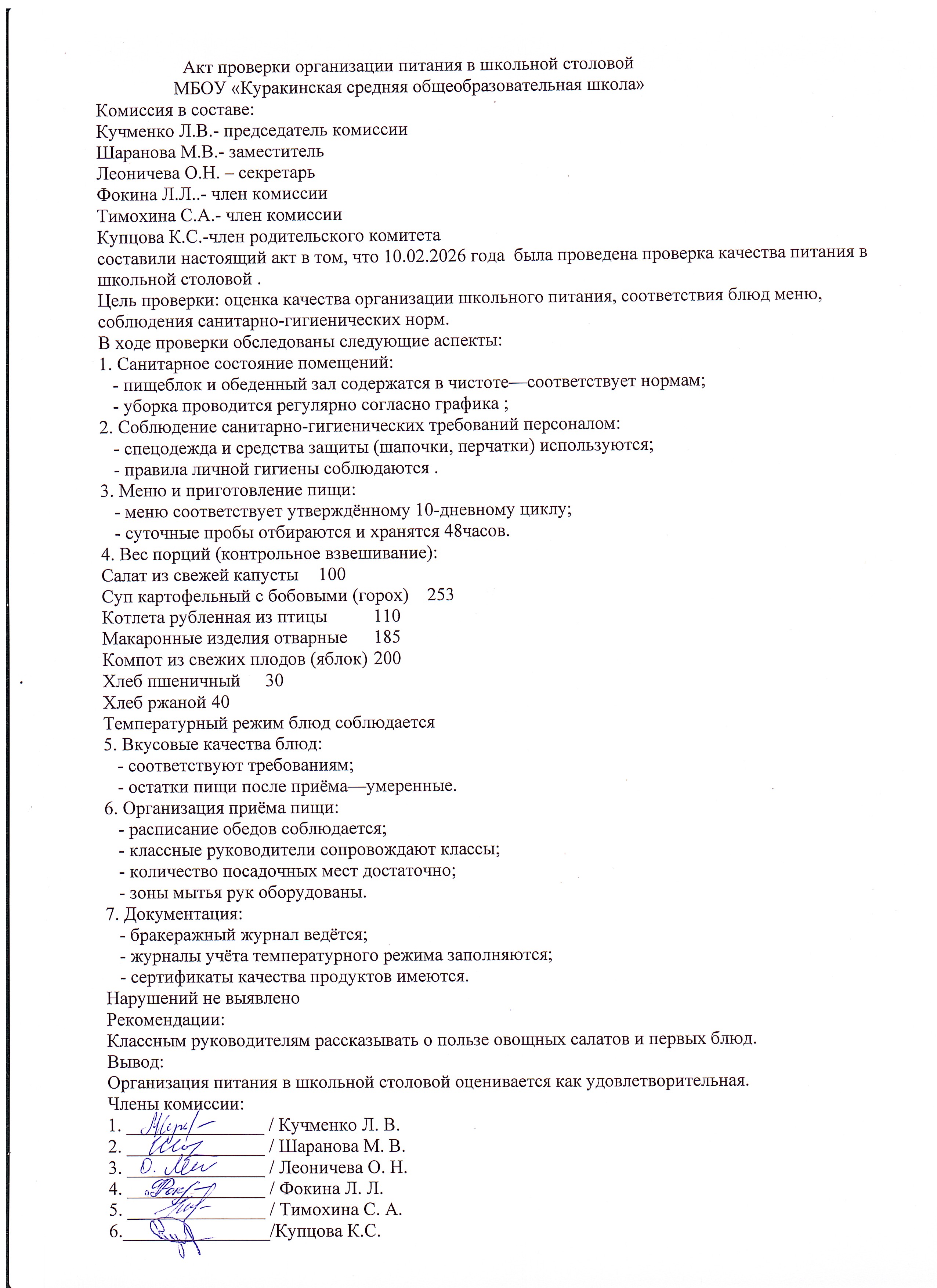 в МБОУ "Куракинская средняя общеобразовательная школа":